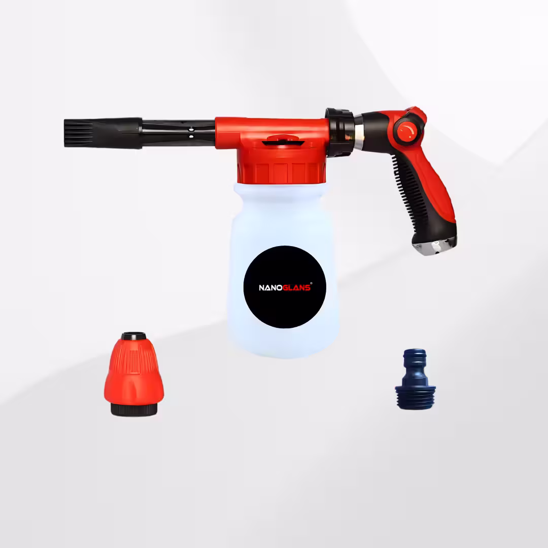 Die Schaum- und Wasserpistole Nanoglans liefert perfekten Schaum und kann einfach an einen Gartenschlauch angeschlossen werden. Kein Hochdruckreiniger erforderlich.
