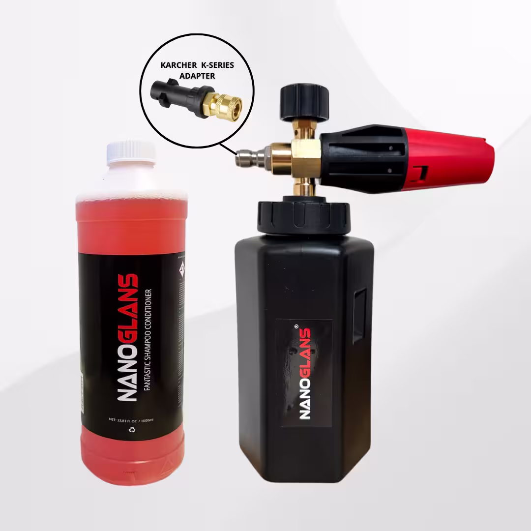 Breng een dikke laag rijk schuim aan met de kracht van de Nanoglans Foam Cannon – speciaal ontworpen voor hogedrukreinigers. Combineer dit met onze GRATIS meegeleverde Nanoglans Fantastic Shampoo 1L en ontdek waarom duizenden autoliefhebbers zweren bij deze combinatie.